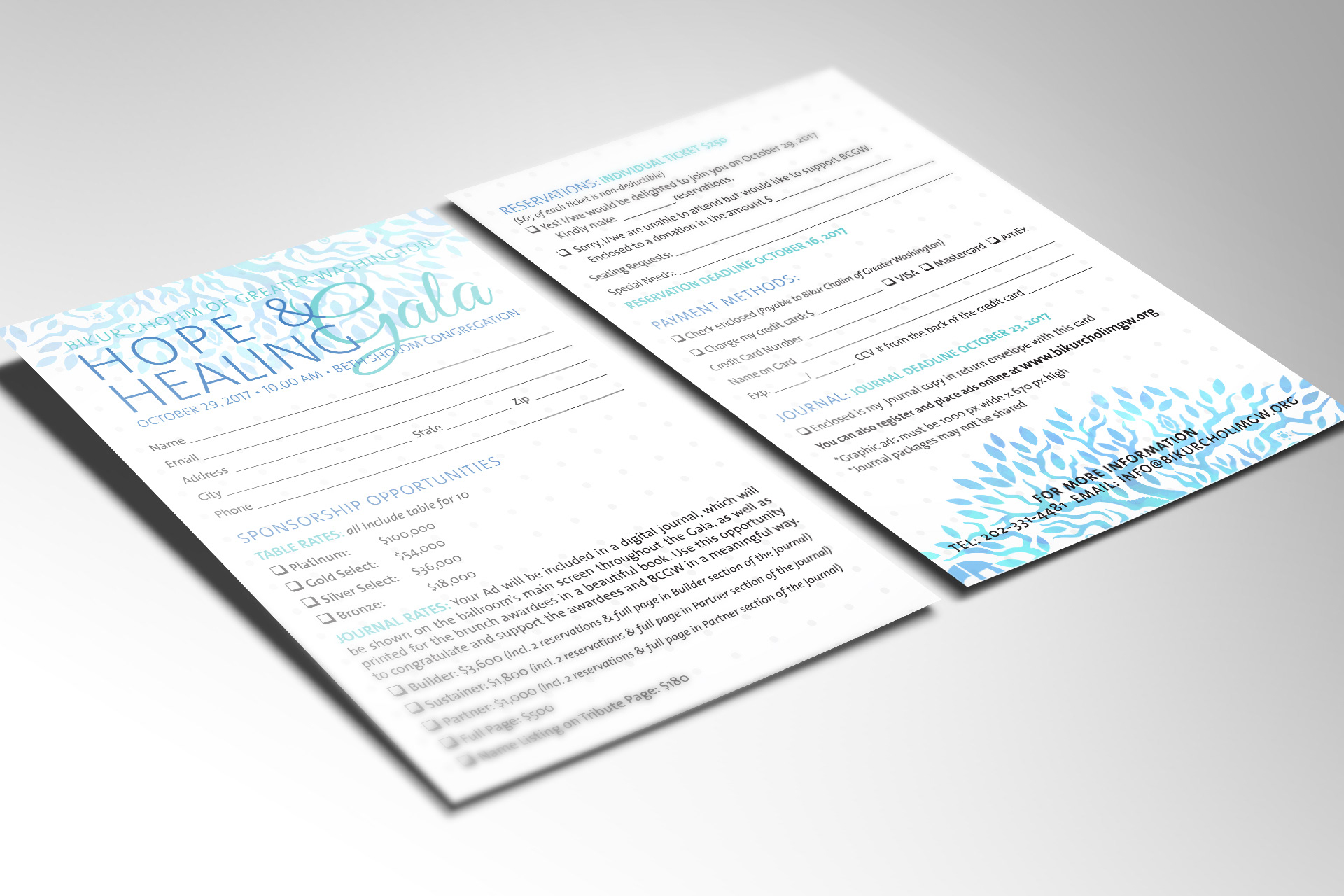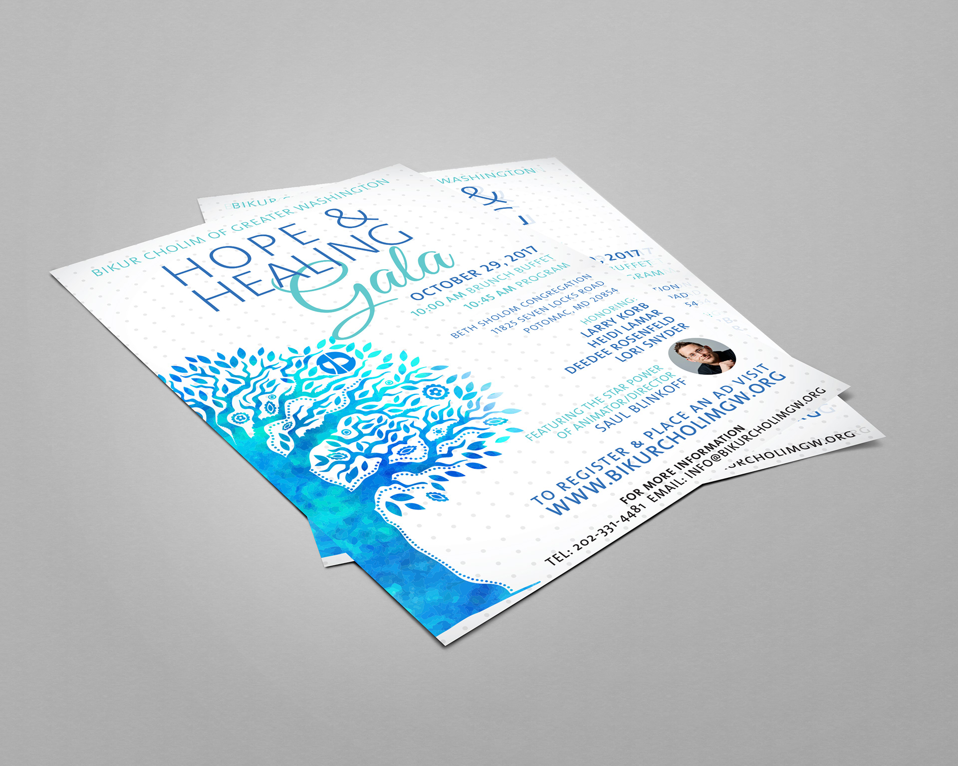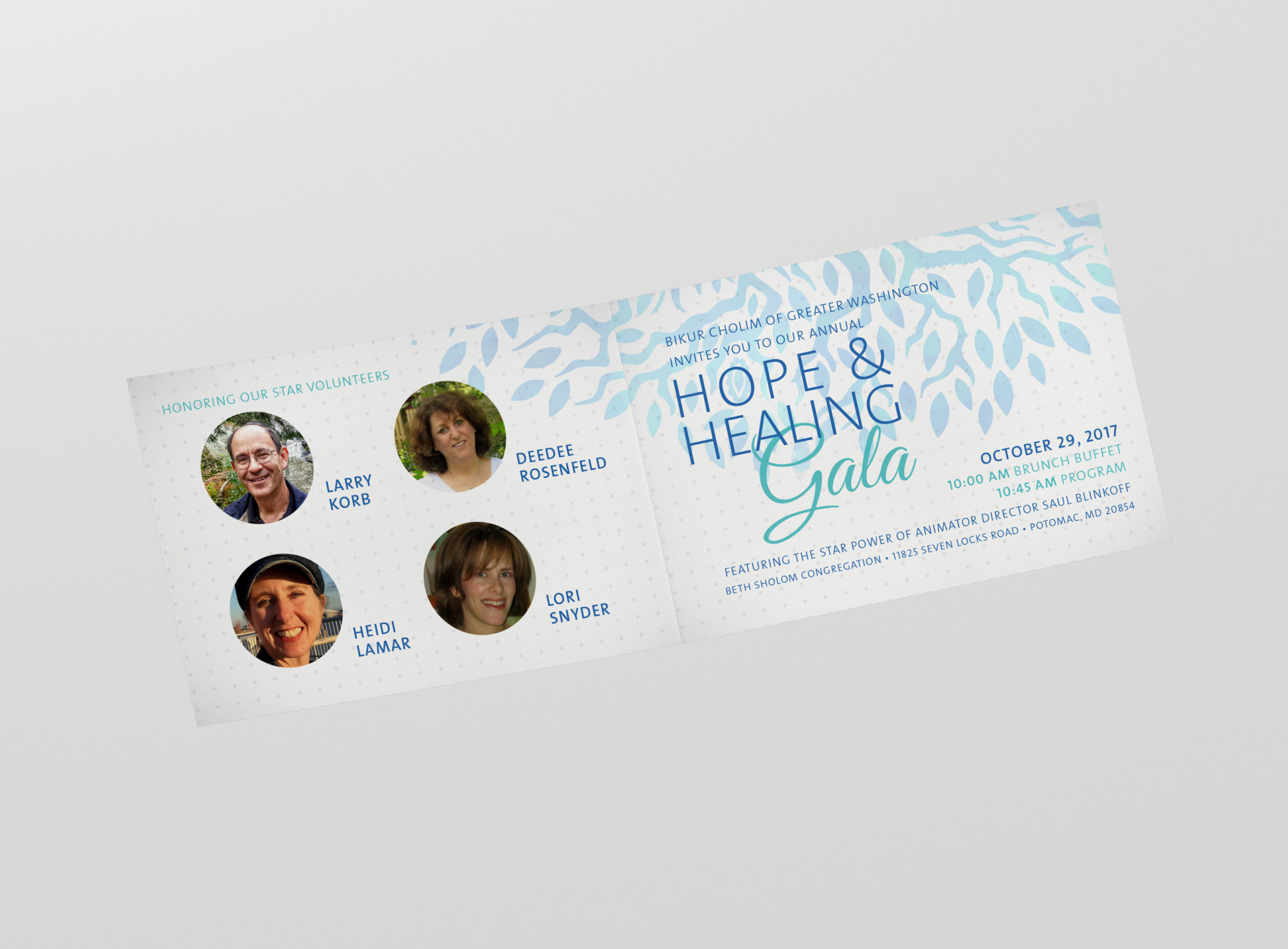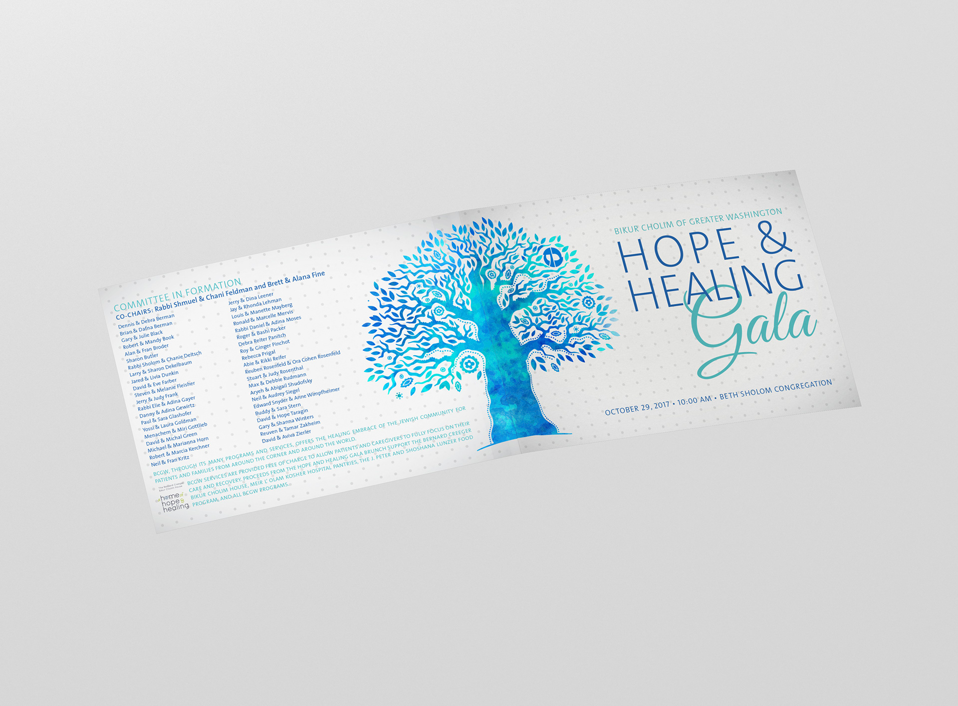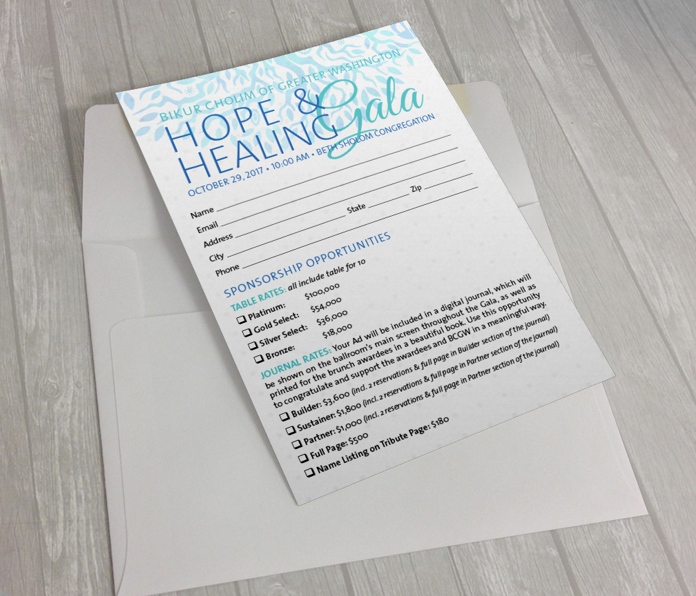 Annual Gala material (invitation package, posters, flyers, web banner) for Bikur Cholim of Greater Washington, a non-profit, volunteer based service organization that provides assistance to people facing medical and related challenges.